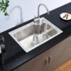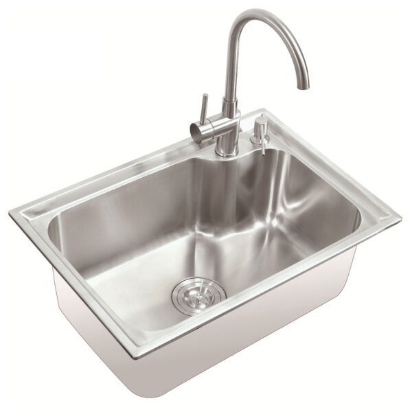 Chậu được tích hợp một lỗ chờ cho việc gắn bình xịt nước rửa chén, hoặc có thể dùng để lắp vòi nước tinh khiết.