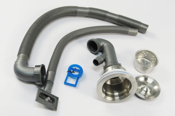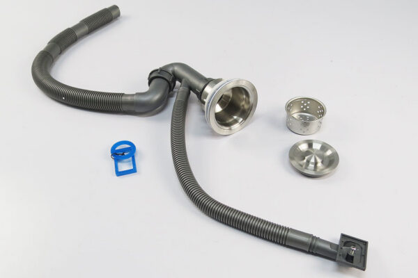 Bộ xả đi kèm với 2 rốn lọc bằng Inox SUS 304 với lọc chặn rác được làm bằng inox 304, sắc nét. Kích thước 110mm cho hộc nhỏ và 140mm hộc lớn, giúp thoát nước nhanh chóng. Bộ xả có đủ dây thoat nước cho hố rác nhỏ.