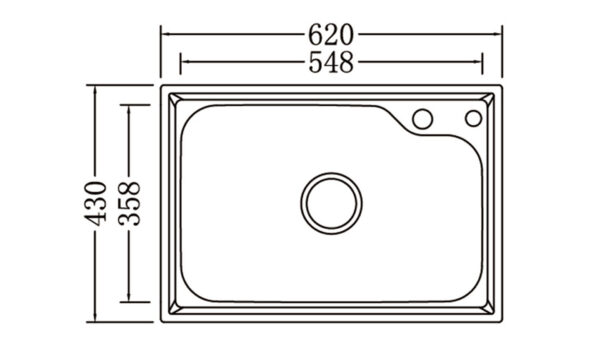 Hộc lớn với thiết kế rộng rãi để rửa ráy những vật dụng lớn, tạo sự thoải mái khi sử dụng. Chậu được tích hợp các tiện ích như : lỗ gắn bình nước rửa chén.