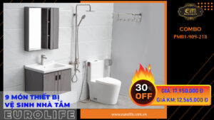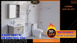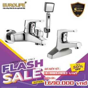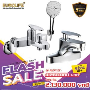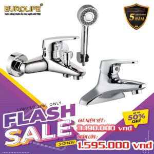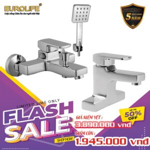 COMBO Bộ vòi sen nóng lạnh Đồng mạ Chrome Eurolife EL-IRIS01 + Vòi lavabo nóng lạnh 2 chân EL-IRIS03 (Trắng bạc) Eurolife COMBO EL-IRIS0103