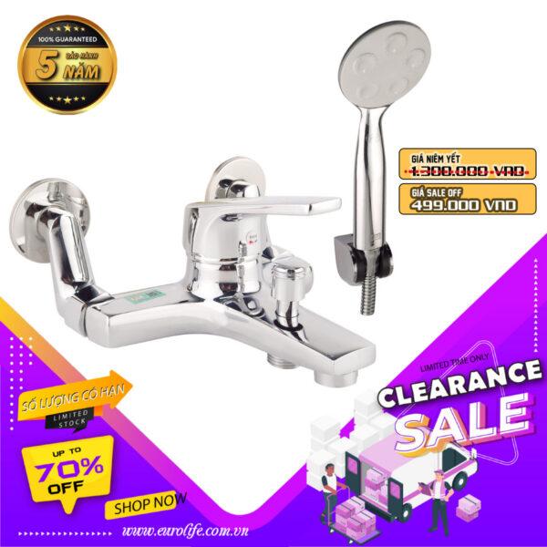 Bộ vòi sen nóng lạnh chân ngoài, Đồng mạ Chrome Eurolife EL-3001-New (Trắng bạc)