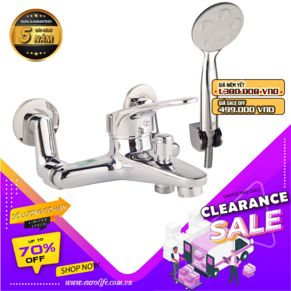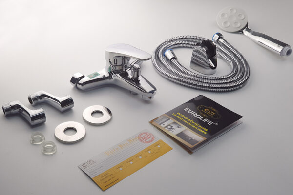 Bộ vòi sen nóng lạnh chân ngoài Đồng mạ Chrome Eurolife EL-6001-New (Trắng bạc)