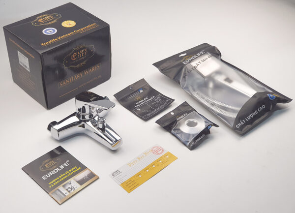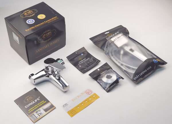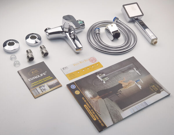 Sản phẩm đi kèm bộ tay dây sen siêu tăng áp Eurolife EL-105SH.