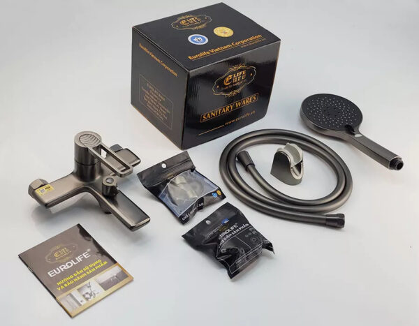 Bộ vòi sen nóng lạnh Đồng mạ tĩnh điện màu xám Eurolife EL-GRAY 01