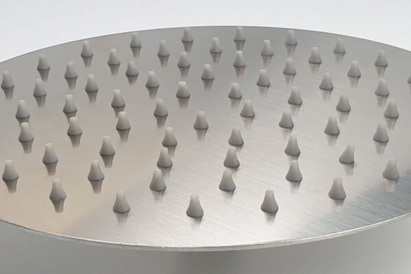 Các núm cao su được bóp gọn, giúp tăng áp lực cho dòng chảy, giúp đài sen lớn chảy mạnh hơn. Núm cao su có thể chịu nhiệt cao, phù hợp với nước nóng dùng trong việc tắm rửa.