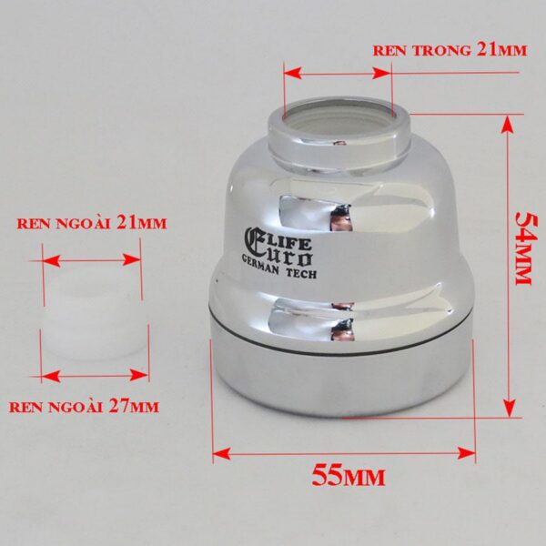 - Kích thước : Mặt vòi đường kính 40mm, có thể gắn với ren ngoài 21mm ( phù hợp hầu hết các loại vòi phổ thông ) và ren trong 24mm
