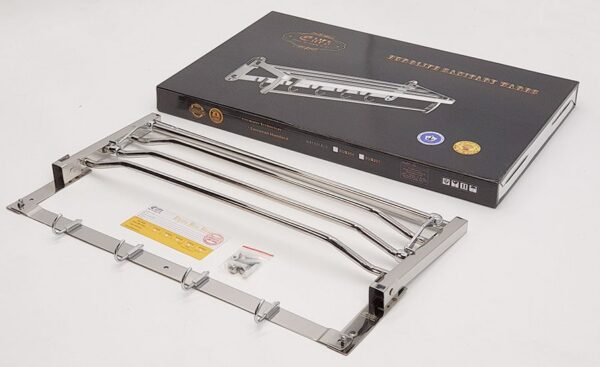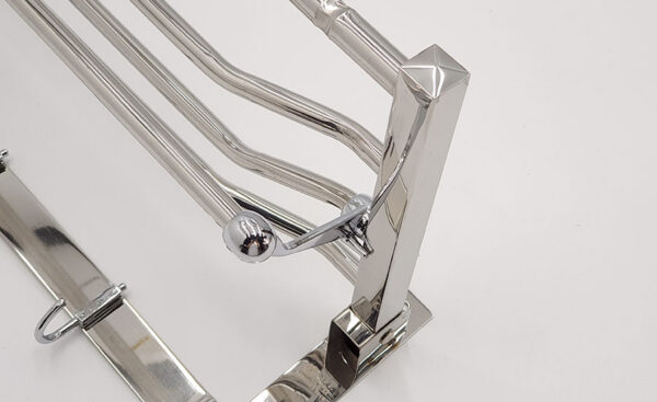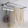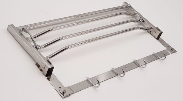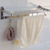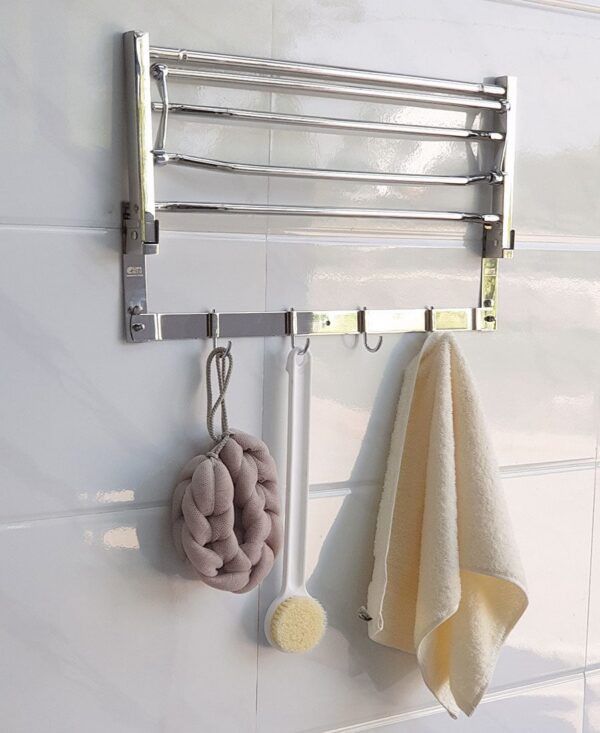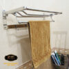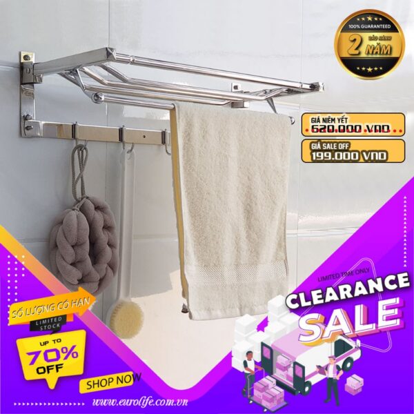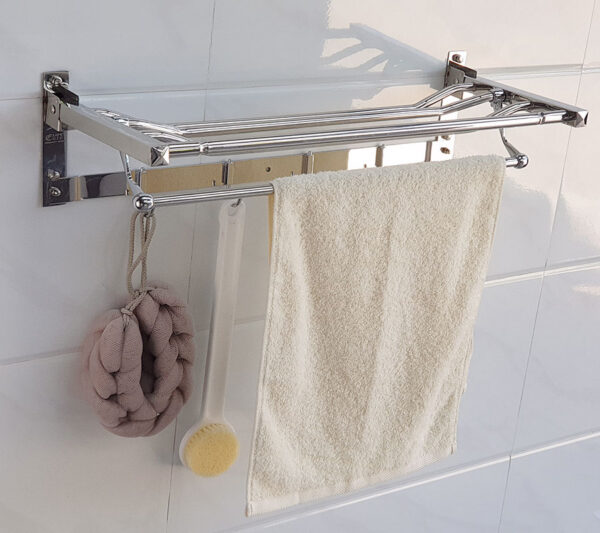 Kệ có thể gấp thẳng hoặc bẻ vuông góc 90 độ tiện dụng . Máng treo có thể để khăn sạch gấp khô, phơi khăn ướt và móc khăn tắm, áo quần hay các vật dụng khác.