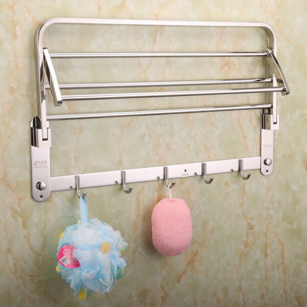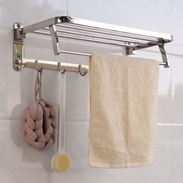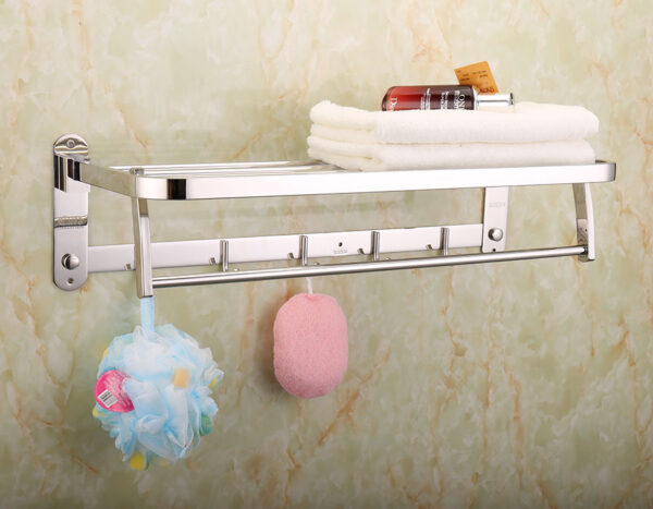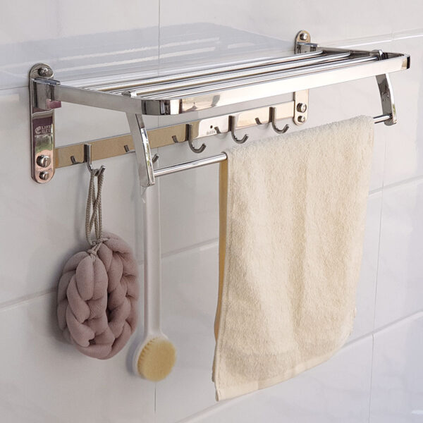Kệ được thiết kế đang năng linh động với 1 máng để khăn, 1 máng treo phơi khăn tắm và 5 móc treo đồ, thuận tiên khi sử dụng