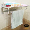 Kệ có thể gấp thẳng hoặc bẻ vuông góc 90 độ tiện dụng. Máng treo có thể để khăn sạch gấp khô,
