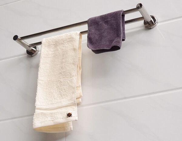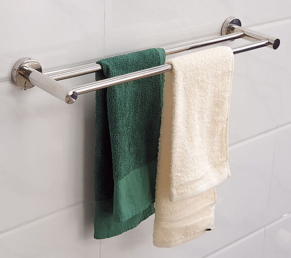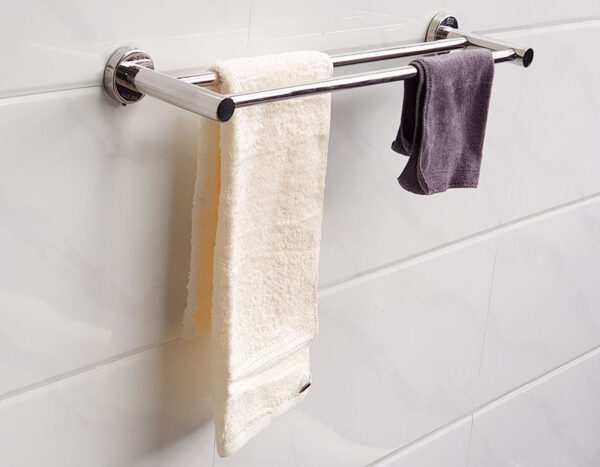 Thanh treo khăn được thiết kế với một máng đôi, trụ tròn. Trụ chính lớn lên tới 25mm, chịu lực cao.