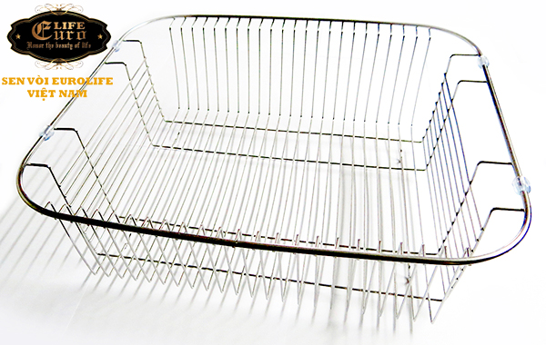 Rổ Inox Eurolife EL-C16 (Trắng bạc) đi kèm chậu Inox 2 hộc 1 hố rác Eurolife EL-C3