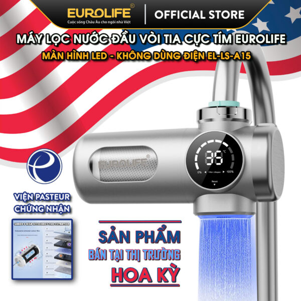 (Sản phẩm bán tại Mỹ) Máy lọc nước đầu vòi màn hình LED, tia UV khử khuẩn Eurolife EL-LS-A15