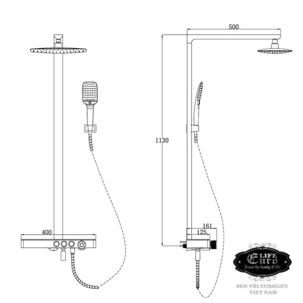 Thân vòi được thiết với hình khối chữ nhật bo cong 2 góc, mạnh mẽ. Tay mở nguồn nước và núm chuyển chế độ nằm mặt trước vòi tiện dụng. Đặc điểm nổi trội của các sản phẩm Eurolife là nước mạ tinh xảo, sáng bóng không tì vết, mang lại sự hoàn hảo và sang trọng cho phòng tắm
