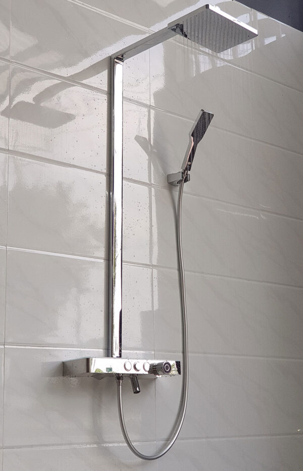 Ống dẫn cây sen hình chữ L vuông, to, khỏe với chiều dài 1085mm chất liệu Inox 304 mạ Chrome sáng bóng