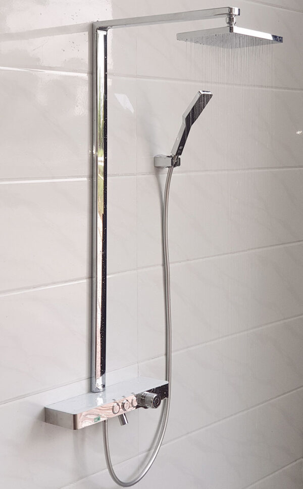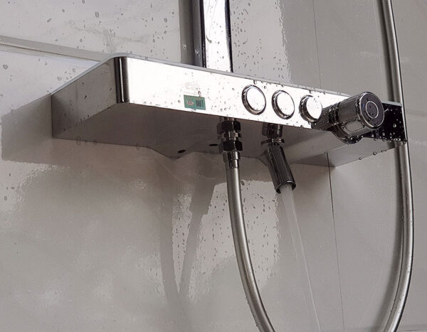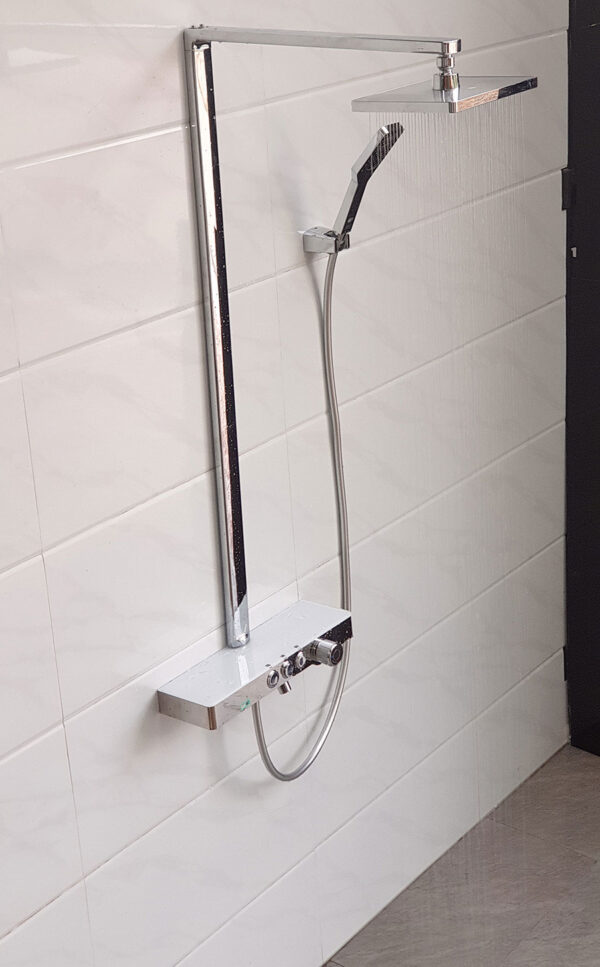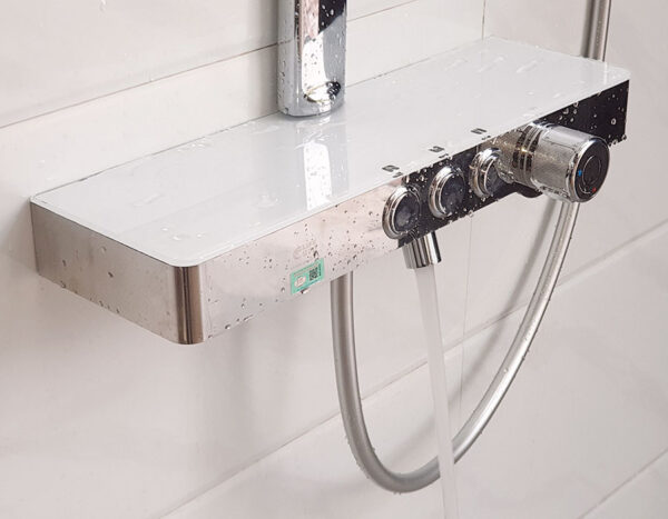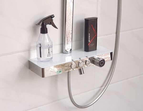 Mặt trên của vòi có thể dùng để các loại mỹ phẩm, sữa tắm hay dầu gội, dễ dàng lau rửa với kiếng cường lực dày dặn chắc chắn
