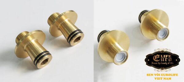 Chân kết nối được làm từ Đồng chất lượng cao với 1 bên là đầu ren 21 để gắn vào đầu chờ đường nước. Đầu còn lại với roong cao su 2 lớp kết nối với thân củ sen