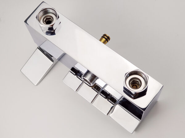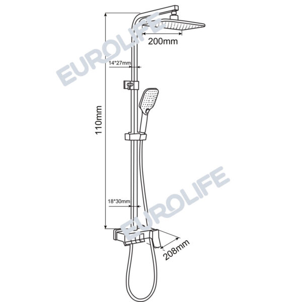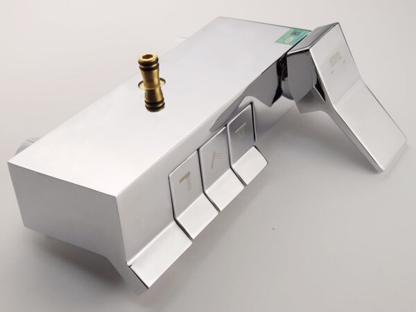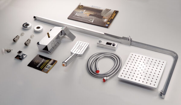 Thân vòi được thiết với hình vuông góc, mạnh mẽ. Tay mở nguồn nước và núm chuyển chế độ nằm mặt trước tiện dụng. Đặc điểm nổi trội của các sản phẩm Eurolife là nước mạ tinh xảo, sáng bóng không tì vết, mang lại sự hoàn hảo và sang trọng cho phòng tắm