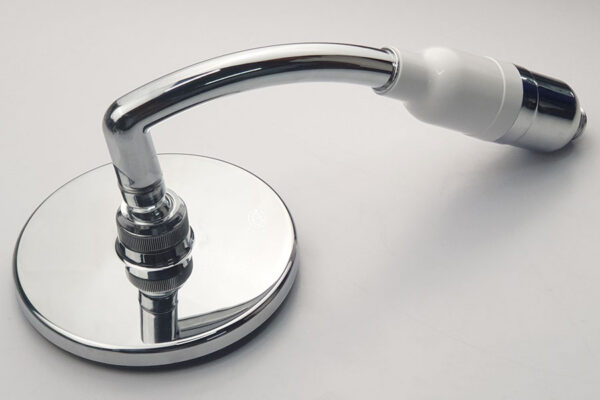 Tay sen được làm bằng nhựa ABS thân thiện với sức khỏe và môi trường, mạ Chrome sáng bóng, kết hợp với màu trắng sữa.