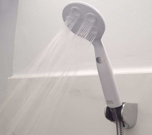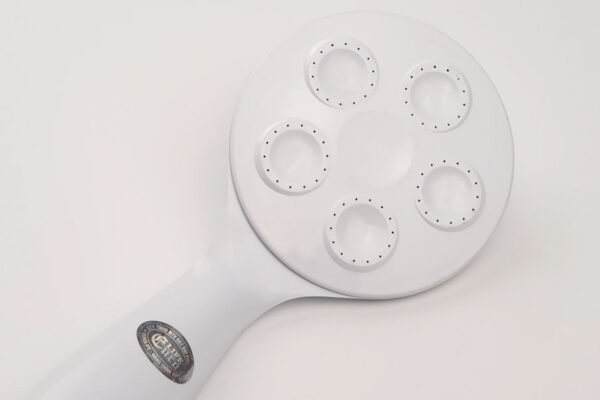 5 mặt phun tạo các luồng nước đan chéo nhau, giúp nước tơi mịn và êm ái. Tay có thiết kế siêu mỏng, giúp sản phẩm nhẹ nhàng, dễ sử dụng hơn khi tắm gội