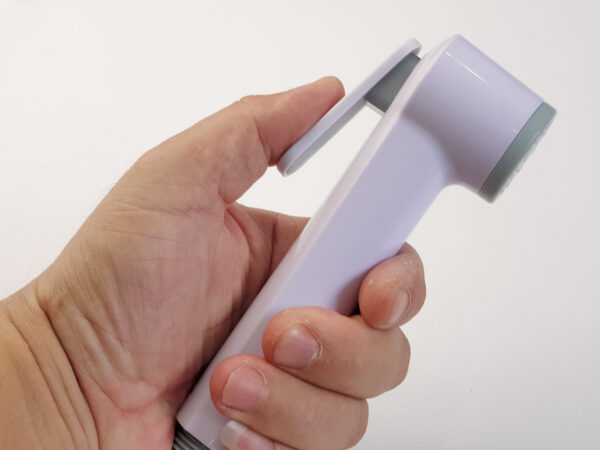 Tay nhấn của vòi xịt được thiết kế với chức năng rảnh tay, không cần nhấn giữ khi sử dụng. Chỉ cần nhấn chốt, bạn có thể rảnh tay làm những công việc khác
