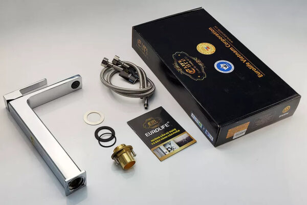 Bộ sản phẩm đầy đủ bao gồm : 1- Thân vòi Lavabo 2- Bộ 2 dây Inox SUS 304, 1 bát lắp đặt, 2 roong cao su 3- Sách hướng dẫn sử dụng kèm thẻ bảo hành