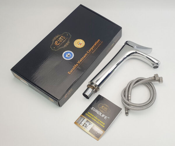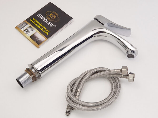 Vòi Lavabo điếu cao 30cm nóng lạnh Đồng mạ Chrome Eurolife EL-ROS03 (Trắng bạc)