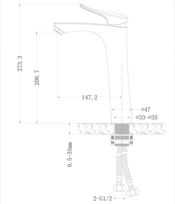 Vòi cao 273 mm, đường kinh 42mm, phù hợp với các loại Lavabo nổi, Lavabo tô hoặc Lavabo âm bàn.