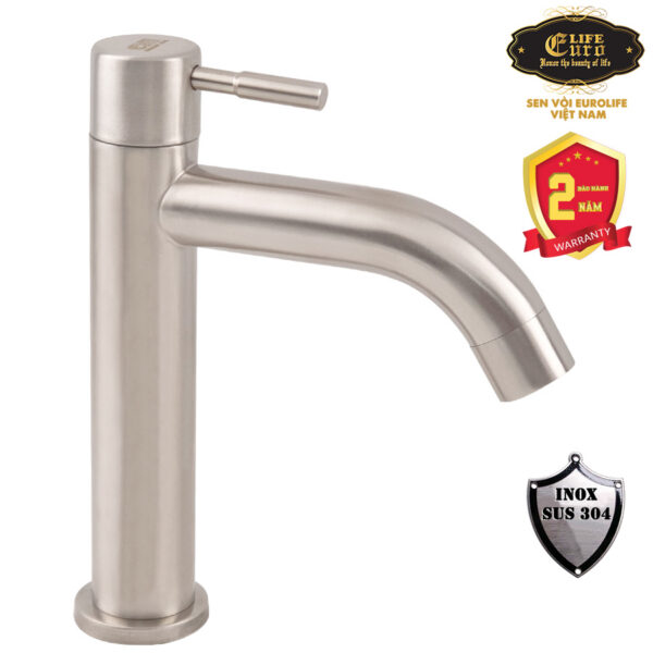 Vòi Lavabo lạnh chất liệu Inox SUS 304 Eurolife EL-LL123 (Trắng vàng)