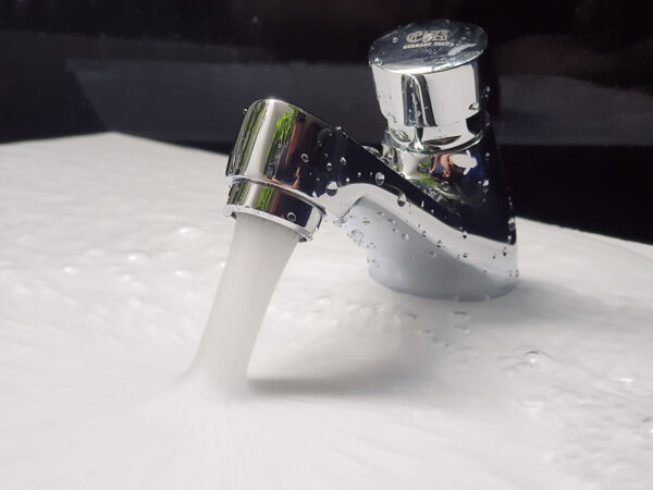 Vòi được thiết kế tiết kiệm nước. Người dùng chỉ việc nhấn nút , và van sẽ từ từ đóng lại sau khoảng 5 giây sử dụng.