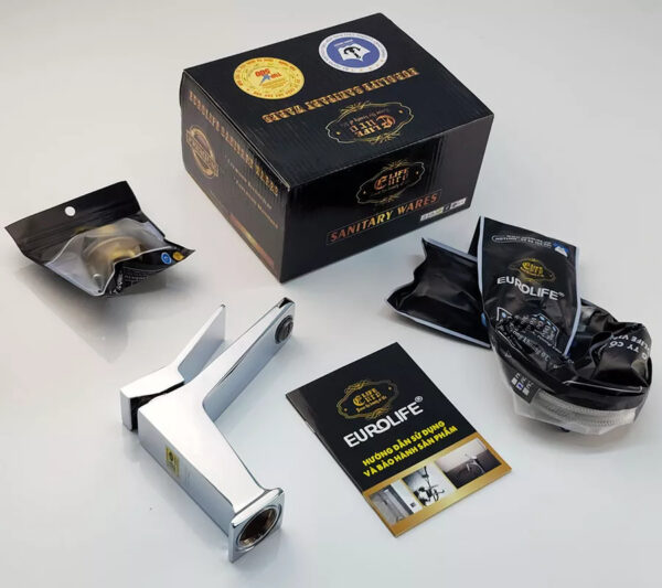 Tay cầm dày và chắc chắn, giúp đóng mở nguồn nước dễ dàng. Logo Eurolife được in trên tay cầm cùng tem điện tử thông minh chống hàng giả, có thể truy xuất nguồn gốc được dán sau lưng sản phẩm