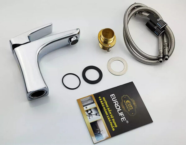 Bộ sản phẩm đầy đủ bao gồm : 1- Thân vòi Lavabo 2- Bộ 2 dây Inox SUS 304, 1 bát lắp đặt, 2 roong cao su 3- Sách hướng dẫn sử dụng kèm thẻ bảo hành