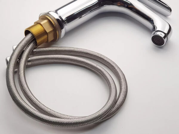 Dây cấp sau khi đã lắp đặt, kết nối với thân vòi