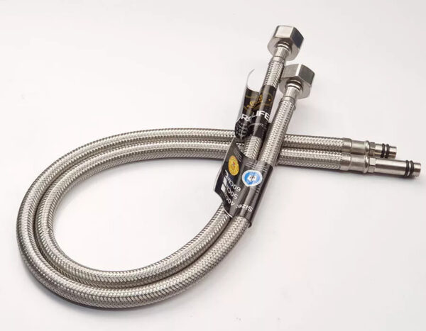 Dây cấp dài 50cm chịu nhiệt cao. Thân dây bằng Inox, 2 đầu ren được đúc bằng Inox SUS 304 bền bỉ. Hai dây hoàn toàn có thể chịu nhiệt độ cao lên đến 100 độ C