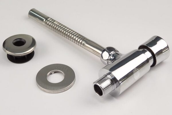 Van kèm theo 1 roong cao su có thể nắp đặt vừa vặn lỗ chờ của các chậu tiểu sứ, giúp nước không bị tràn ra ngoài khi sử dụng