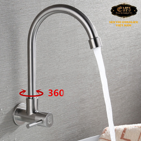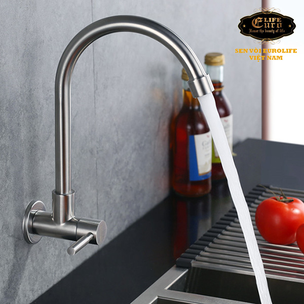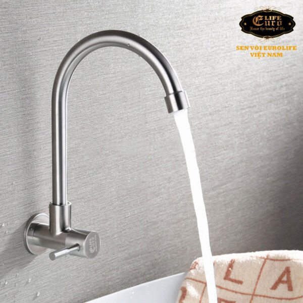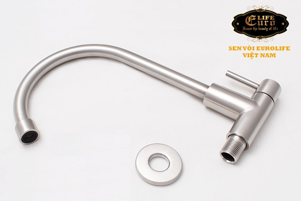 Vòi rửa chén lạnh Inox SUS 304 Eurolife được đúc trọng lực từ INOX SUS 304, không Chì (Pb) lên đảm bảo cho sức khỏe người sử dụng. Sản phẩm không rỉ sét trong thời gian dài sử dụng.