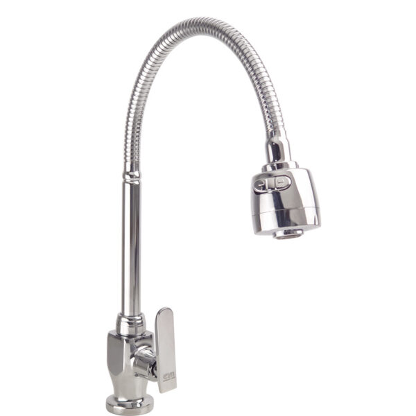 Cần lò xo tiện lợi, có thể điều hướng dòng chảy. Cần vòi có thể quay 360 độ một cách linh hoạt, thuận tiện cho việc sử dụng với chậu rửa 2 hố.
