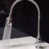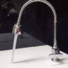 Thân vòi được thiết kế với cần lò xo linh động thuận tiện cho việc rửa ráy