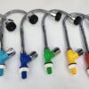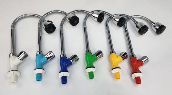 - Chân vòi được thiết kế nhựa PVC nhiều màu sắc sinh động: Xanh lá, xanh dương, xanh đậm, vàng, cam, đỏ, trắng và chân vòi PVC mạ chrome