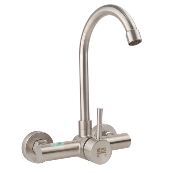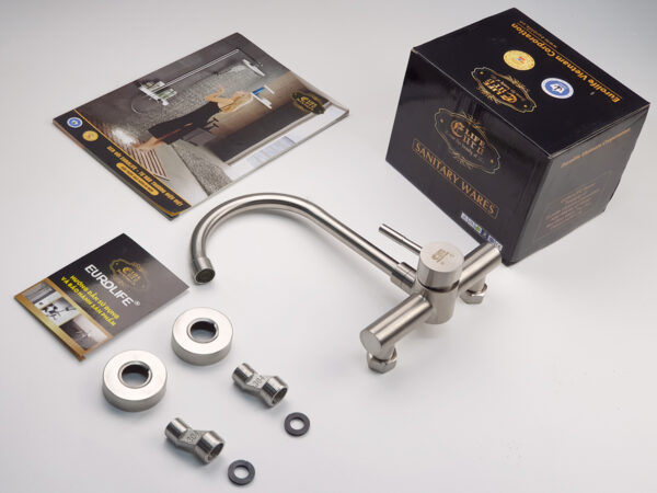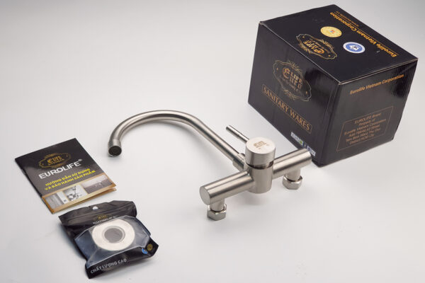 Vòi rửa chén âm tường cần xoay Inox SUS 304 Eurolife EL-T018AT (Trắng vàng)