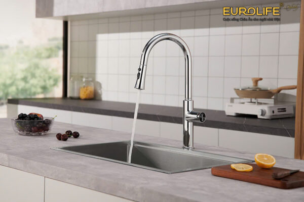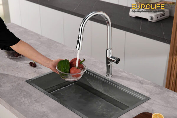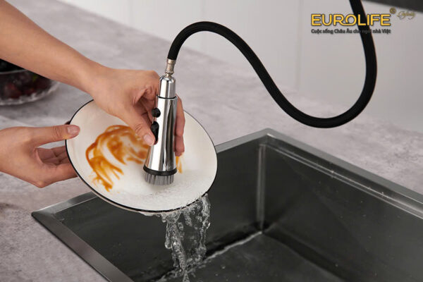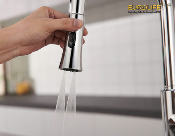 Vòi rửa chén nóng lạnh dây kéo 4 chức năng sử dụng Eurolife EL-IK01