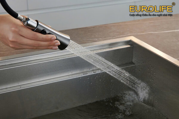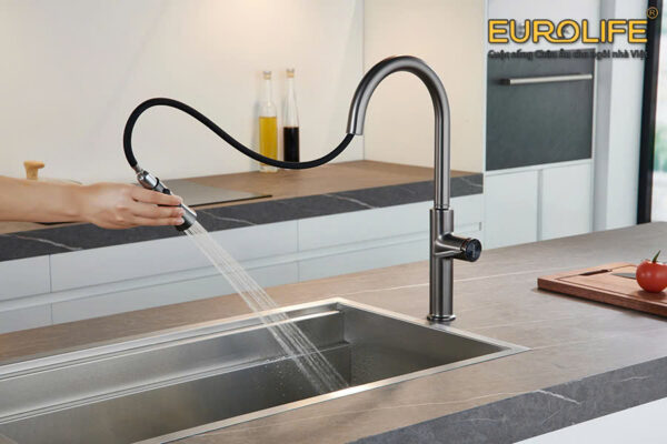 Vòi rửa chén nóng lạnh dây kéo 4 chức năng sử dụng Eurolife EL-IK03