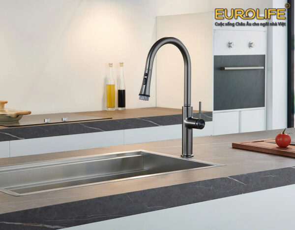 Vòi rửa chén nóng lạnh dây kéo, 4 chức năng sử dụng Eurolife EL-IK03 (Grey-Xám)