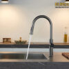 • * Đầu vòi có thể kéo ra ngoài, đầu vòi với 3 chế độ chảy tăng áp, tạo bọt và xả tia, đi kèm chức năng chà rửa chén đĩa