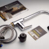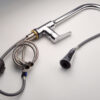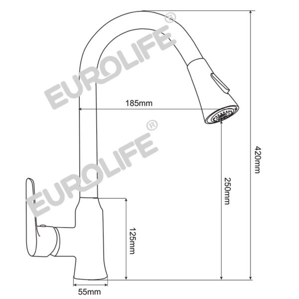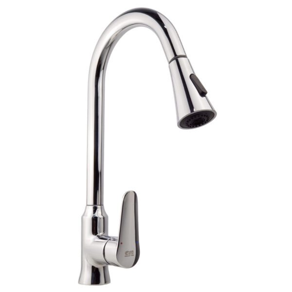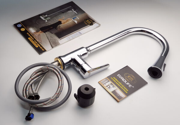 Vòi rửa chén nóng lạnh dây kéo Đồng mạ Chrome Eurolife EL-KM05 (Trắng bạc)