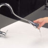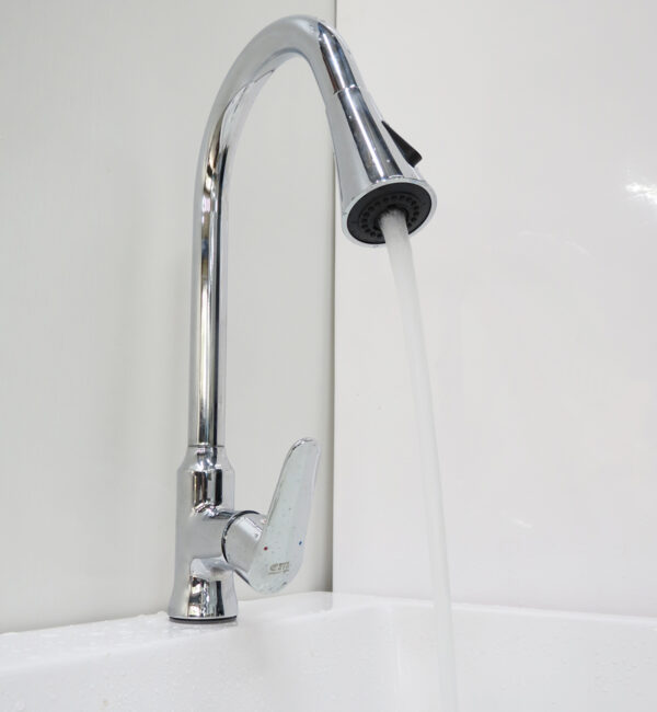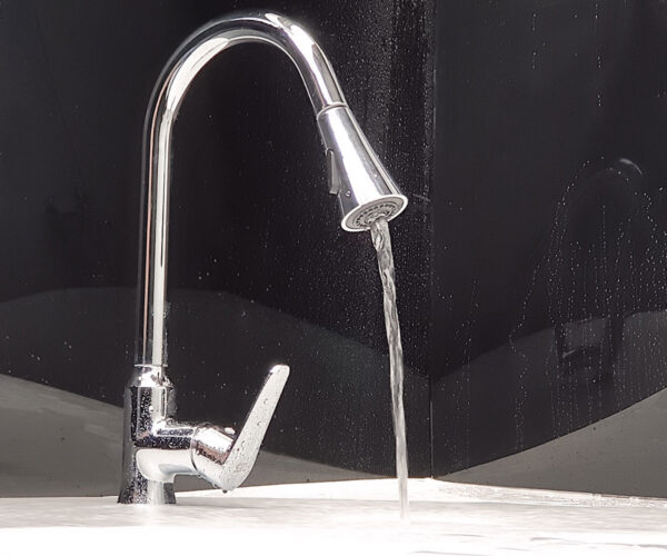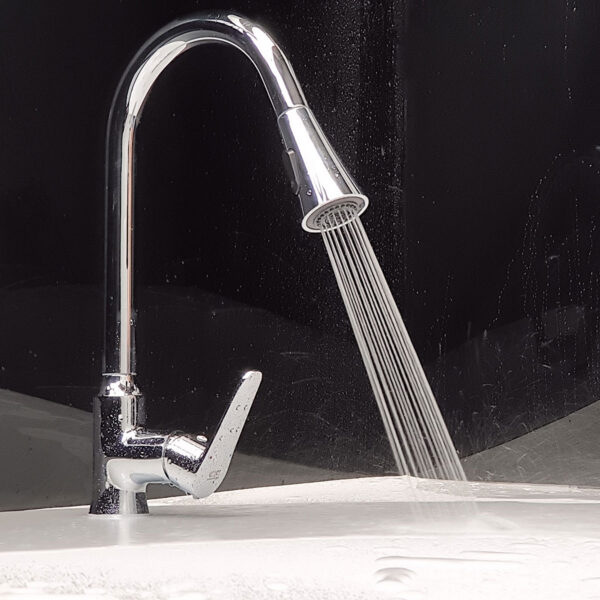Dòng nước mạnh mẽ nhưng không gây văng bắn như các vòi nước thông thường, giúp bếp khô ráo hơn