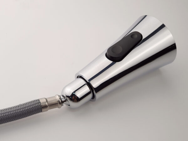 Đầu vòi rút lại thân vòi thì người sử dụng tự buông tay. Được thiết kế với 1 bóng trọng lực gắn trên dây rút, ngướiử dụng có thể điều chỉnh độ dài của dây kéo tùy vào nhu cầu sử dụng 1 cách dễ dàng