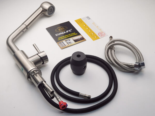 Vòi rửa chén nóng lạnh, dây kéo 2 chế độ xả Inox SUS 304 Eurolife EL-T10-1 (Trắng vàng)