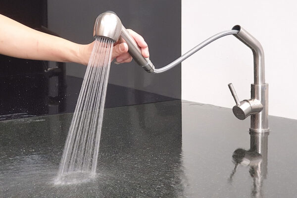 Đầu vòi có thể kéo rời khỏi thân vòi, người sử dụng có thể di chuyển đầu vòi tới những nơi xa khu vực rửa, rất tiện lợi