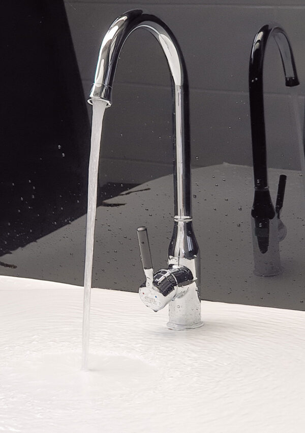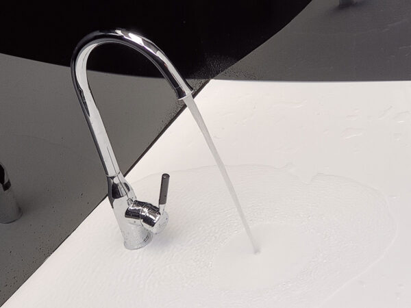 Dòng nước mạnh mẽ nhưng không gây văng bắn như các vòi nước thông thường, giúp bếp khô ráo hơn
