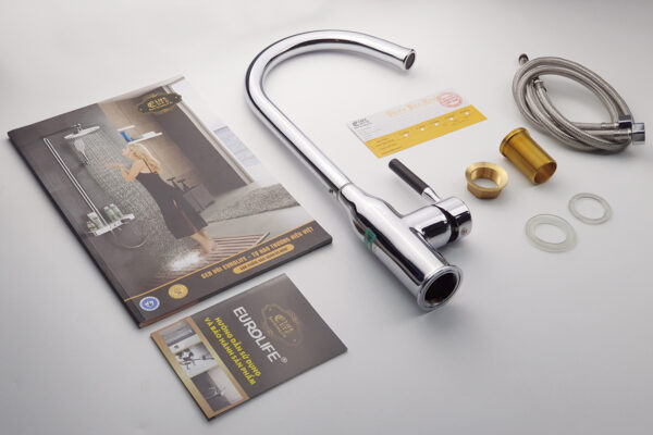 Vòi rửa chén nóng lạnh Đồng mạ Chrome Eurolife EL-KM04 (Trắng bạc)